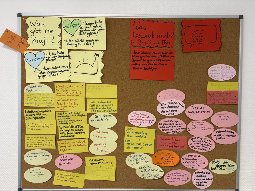 Im Sommer und Herbst 2025 hat die Fachstelle zwei Wochenendseminare zum Thema „Beratung im Kontext türkischer Rechtsextremismus (TRex)” durchgeführt. Gemeinsam mit der Mobilen Beratung gegen Rechtsextremismus NRW (MBR NRW) hat FaTRex Menschen aus Beratungsstrukturen und betroffenen Communitys zusammengebracht – in dieser Form zum ersten Mal. Beide Wochenenden fanden im Salvador-Allende-Haus in Oer-Erkenschwick statt.