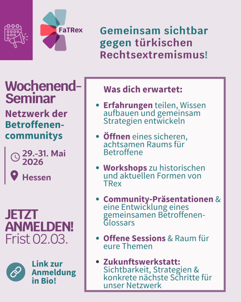 2025 die Fachstelle Türkischer Rechtsextremismus (FaTRex) gegründet. Am 11. Juni 2025 findet in